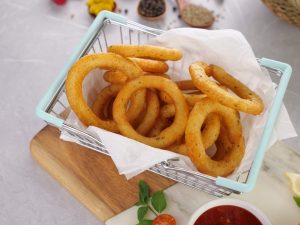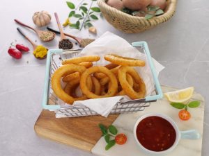 -Add black pepper crushed,salt,garlic powder,rice flour,cornflour,cooking oil,fresh coriander & mix until well combined,reserve half of the mixture & transfer to a piping bag.