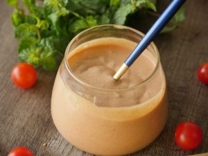 Bowl mein pyaz,tamatar,shimla mirch,hara dhania,onion powder,namak,zeera powder,lemon juice aur national tomato ketchup dal ker ache tarhan whisk ker lein.