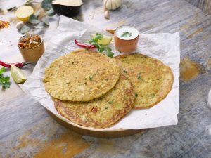 -Grease griddle with cooking oil,add 1/3 Cup of prepared batter,spread evenly & cook on low flame from both sides until golden with cooking oil (makes 4).