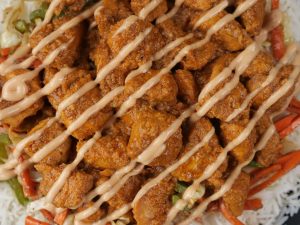 -Assemble cooked bbq chicken on rice,drizzle sauce & serve!