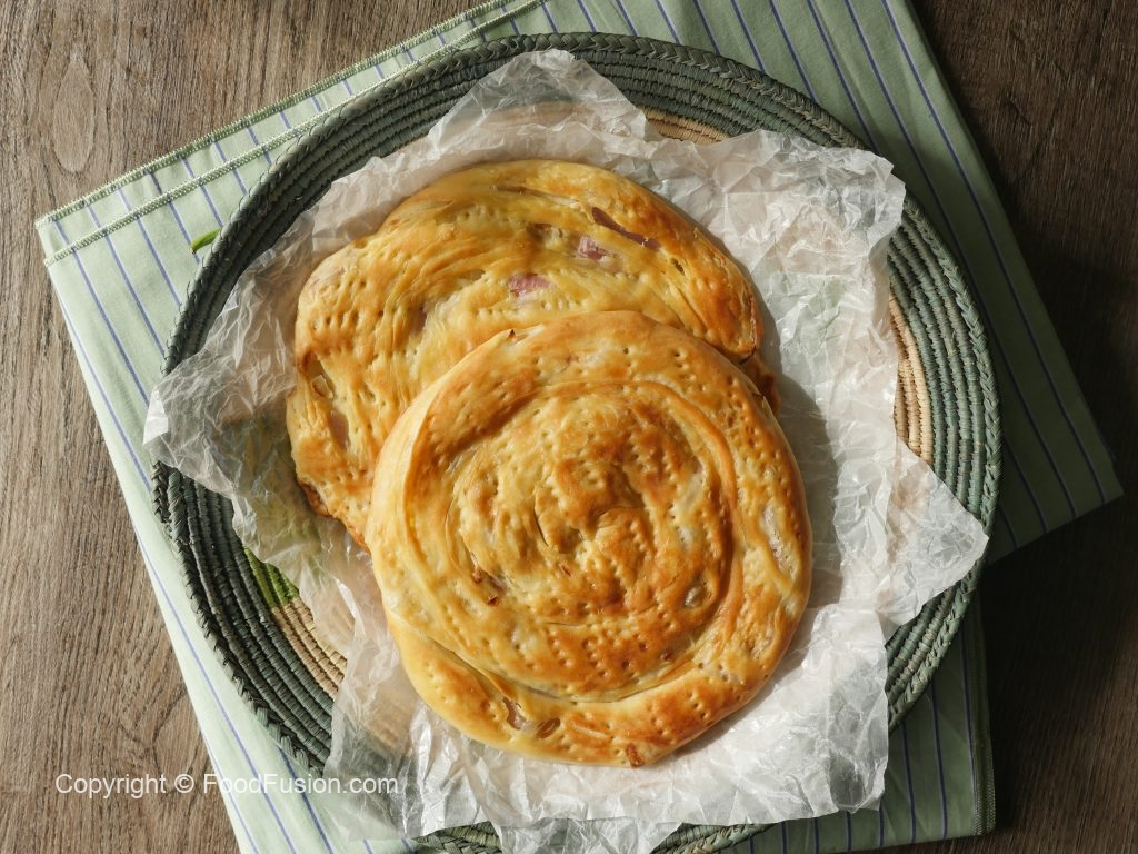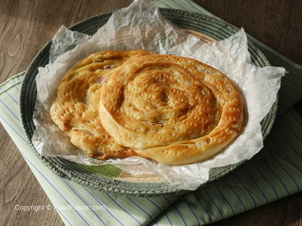 Pyaz filling dal ker pheela lein aur swiss roll ki tarhan roll ker lein.