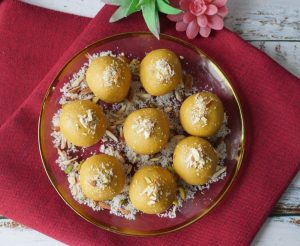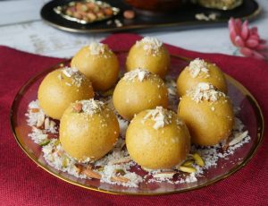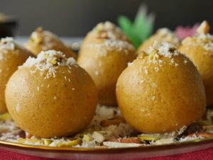 Mixture ko lein aur ek jaisay sizes ka laddu tayyar ker lein (makes 12).