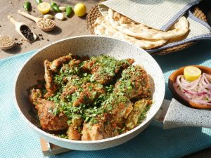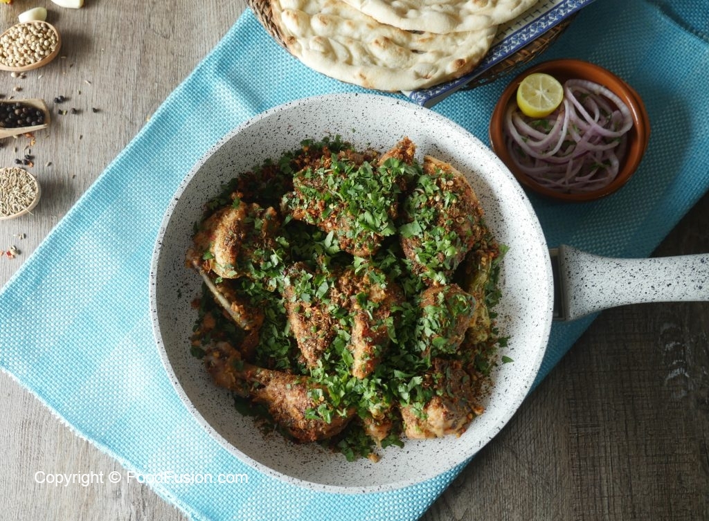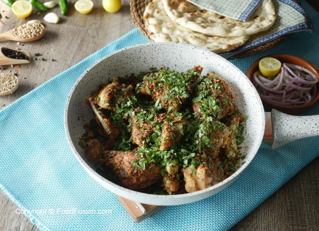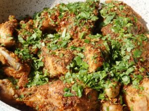 Add lemon juice and fresh coriander,cover & let chicken absorb the spices for 2-3 minutes & serve!