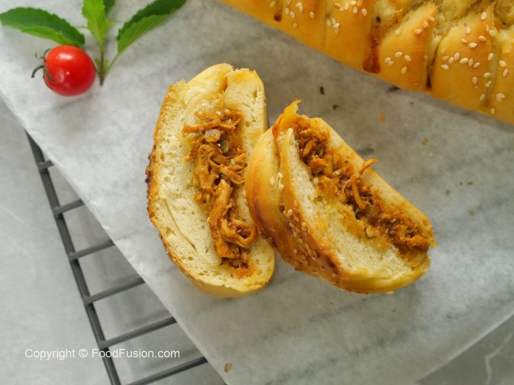 Make the best BBQ Chicken Bread with this foolproof recipe! Soft bread, juicy & smoky chicken filling, and an easy technique for mastering the braid! Try this beautifully woven bread at home and enjoy it with your loved ones! #happycookingtoyou #foodfusion #digitalammi #nurpurbutter
