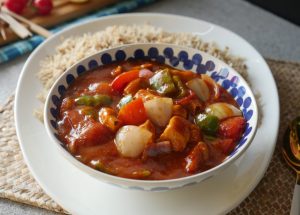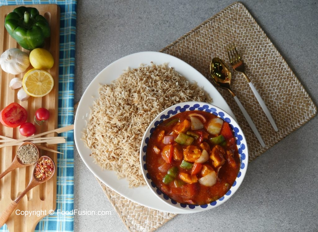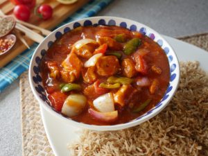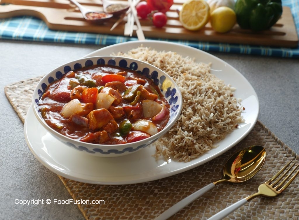 BBQ chicken jalfrezi ko garlic rice ka saath serve karein!