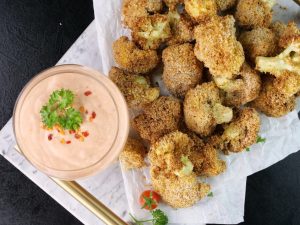-Serve cauliflower bites with yogurt dip!