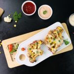 -On cauliflower disc,add & spread pizza sauce,add pizza cheese,capsicum,corn kernels,pickled jalapenos & air fry at 180C until cheese melts (3-4 minutes).