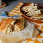 On one side of paratha,add cheddar cheese,mozzarella cheese,cooked vegetable,fried fish pieces, mozzarella cheese and cheddar cheese.