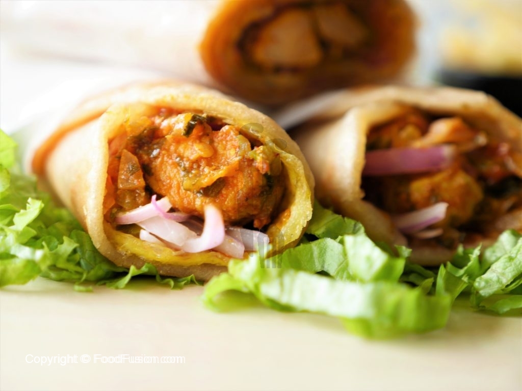 On paratha,add tomato ketchup,onions soaked in lemon juice,cooked chicken,wrap & serve.