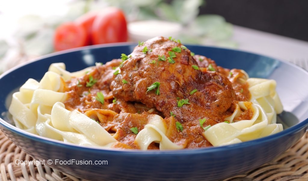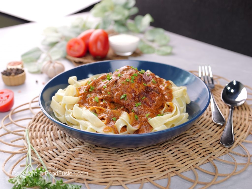 Amazingly tender and juicy chicken Paprikash served with your choice of pasta. Give it a try and enjoy with friends and family. #happycookingtoyou #foodfusion #digitalammi #arraywah