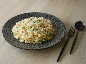 Tray per boiled chawal dal ker pheela lein aur thanda ker lein & side per rakh dein.