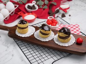 -Dip the tops in chocolate ganache & carefully place the top back on (makes 15) & serve!