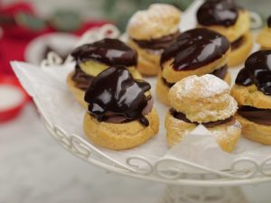 -Pipe mounds of choux dough (5cm) on baking tray lined with butter paper.