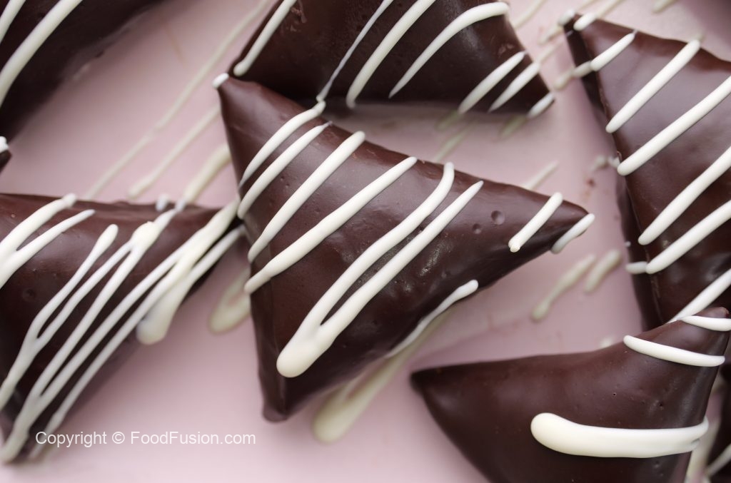 -Dip samosa in melted chocolate & place them on a grill rack until chocolate sets (makes 14).