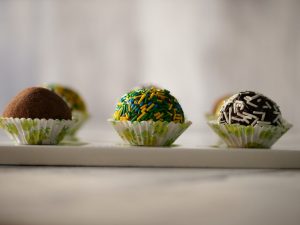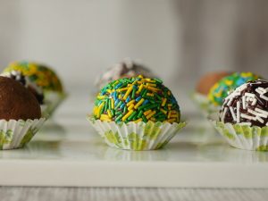 Coat in cocoa powder or multi sprinkles.