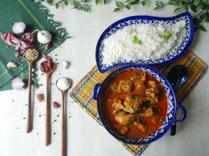 In a grinder,add Kashmiri red chillies,onion,ginger,garlic,coriander seeds,cumin seeds,red chilli powder, black pepper powder,salt,water and grind to make a paste & set aside.