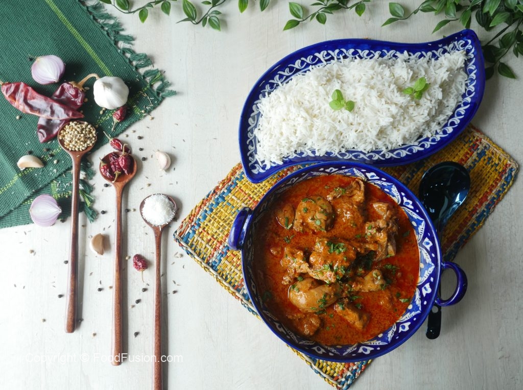 Grinder mein Kashmiri lal mirch,pyaz,adrak,lehsan,sabut dhania,zeera,lal mirch powder,kali mirch powder,namak aur pani dal dein aur grind ker ka paste tayyar ker lein & side per rakh dein.