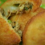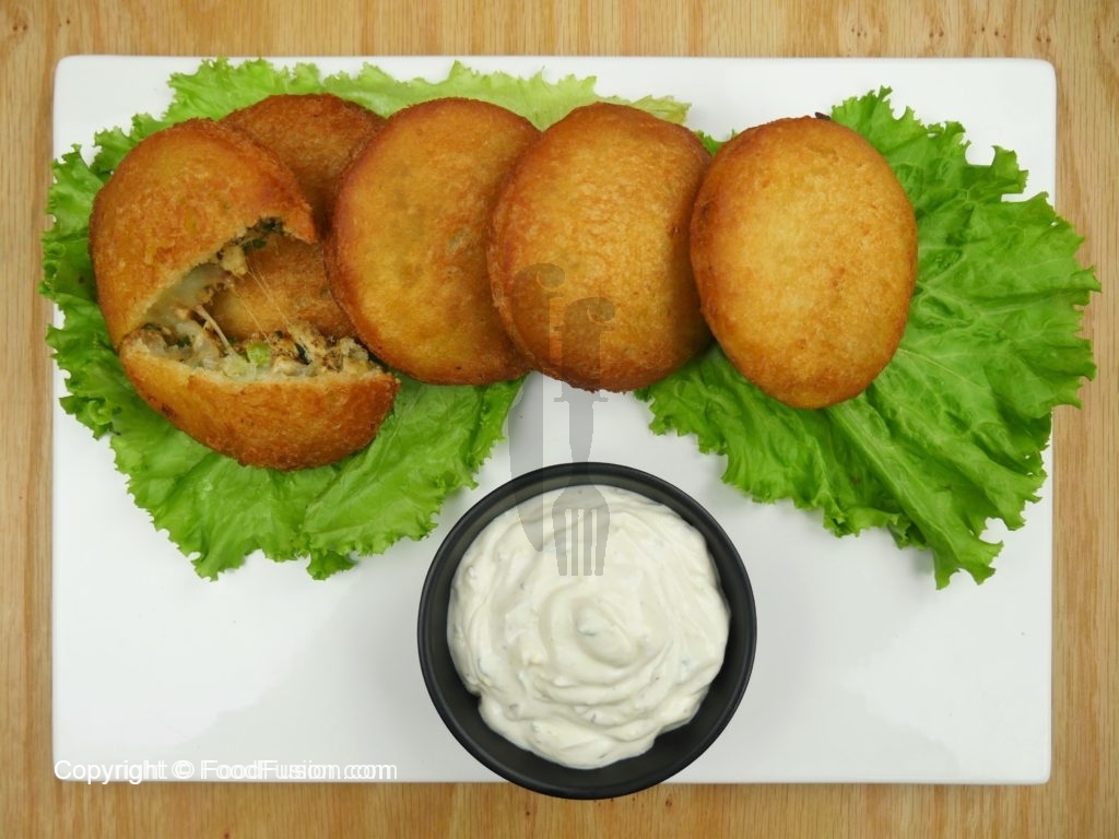 Bowl mein chicken,matar,aloo,dhania,lal mirch,kali mirch,namak,mozzarella cheese aur Olper’s cream dal ker ache tarhan mix ker lein.