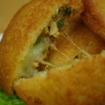 In bowl,add chicken,peas,potato,coriander,red chili,black pepper,salt,mozzarella cheese and Olper’s cream,mix well.