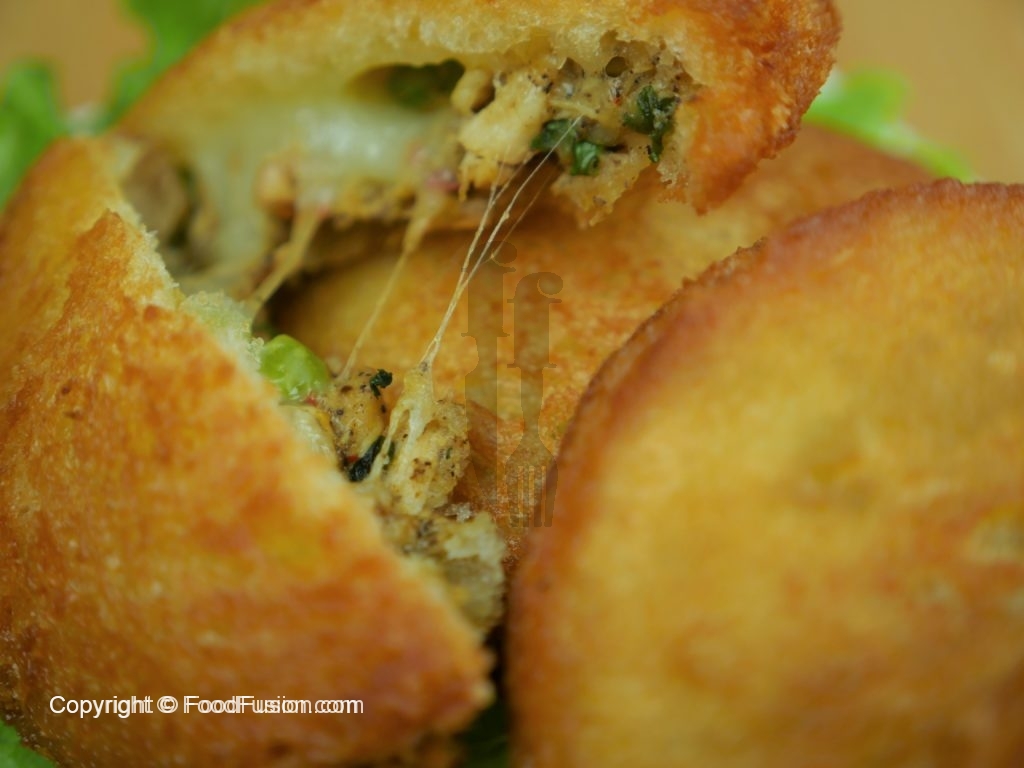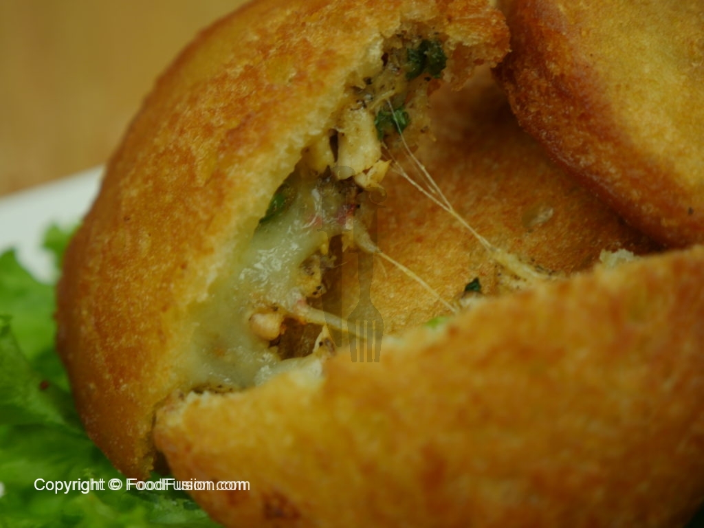 Made kachori with two bread slices,apply water,press and seal edges.Press gently with wet hands (makes 10-12).