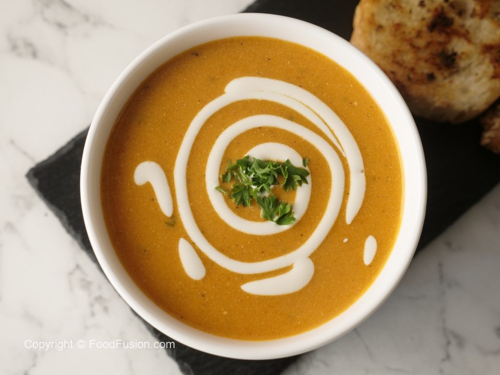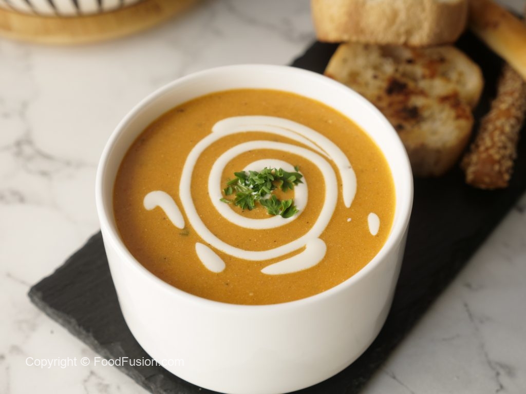 This quick, easy Creamy Tomato Soup is comfort in a bowl, especially when it is topped with the goodness of Olper’s Dairy Cream. #OlpersDairyCream #GoodnessBarhjaye #FoodFusion #DigitalAmmi #HappyCookingToYou
