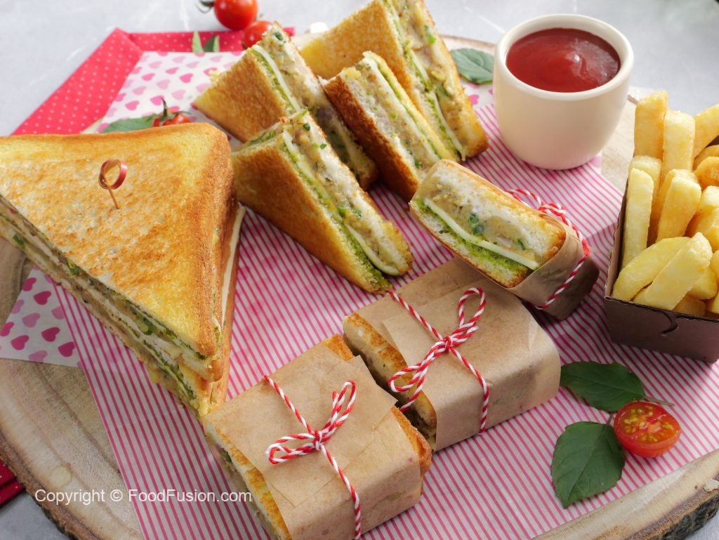 -Place prepared sandwich & toast from both sides until golden & crispy (makes 4).