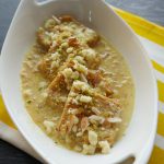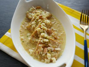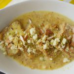 Turn off the flame,add fried bread pieces and let it soak for 10 minutes and turn carefully.