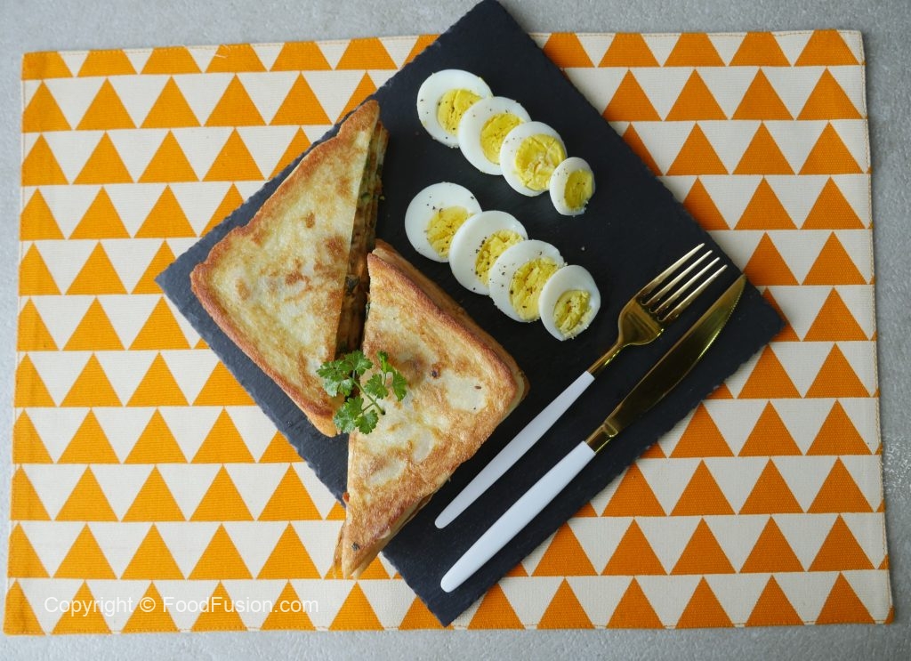 Bread slice per tayyar chicken filling dal ker pheela lein aur upper dosra bread slice rakh dein aur plate ki madad sa evenly press ker lein.