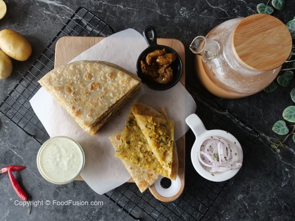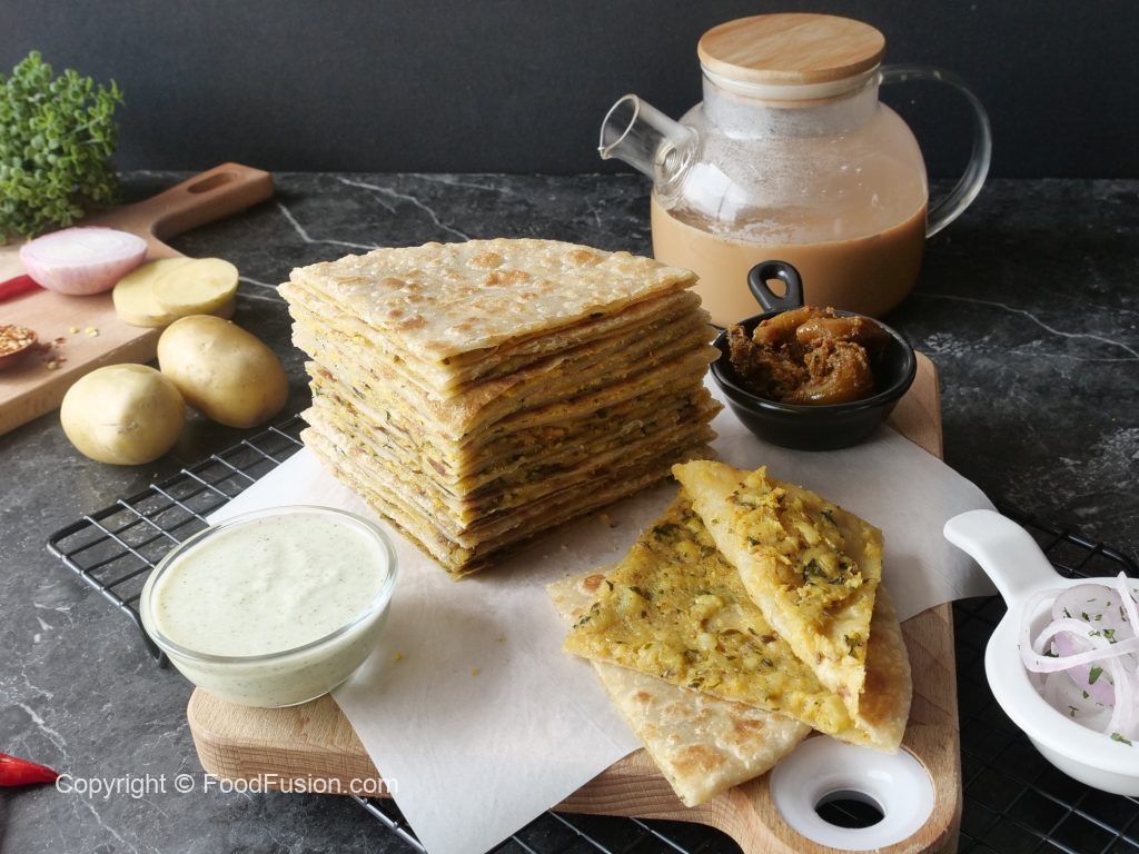 -Heat griddle,place rolled paratha & cook from both sides with ghee until golden & crispy.