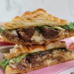 -Add prepared spicy bbq sauce on top croissant & flip to make a sandwich (makes 3-4).