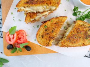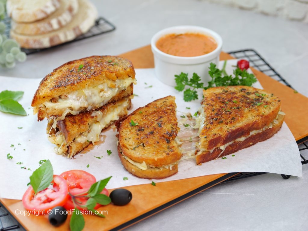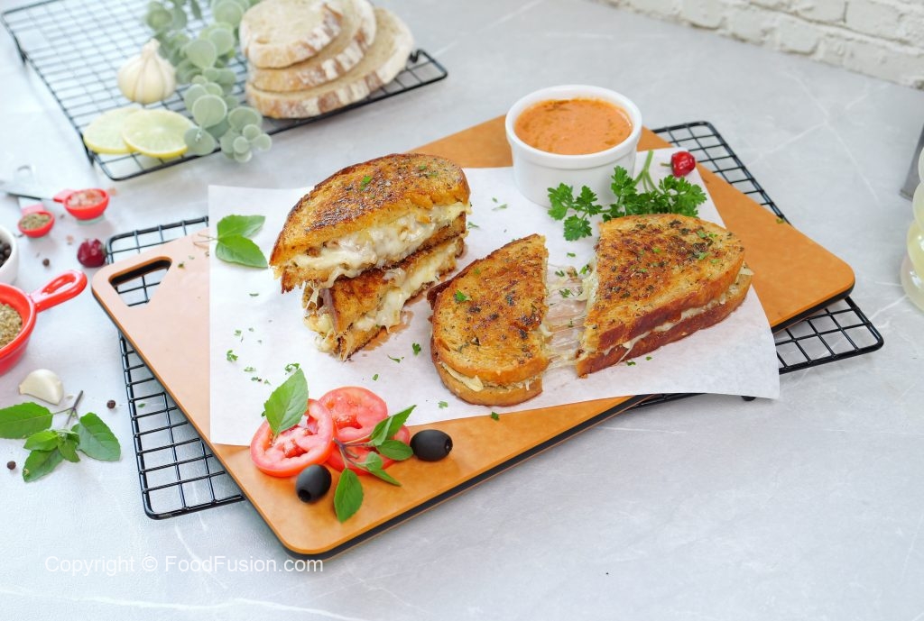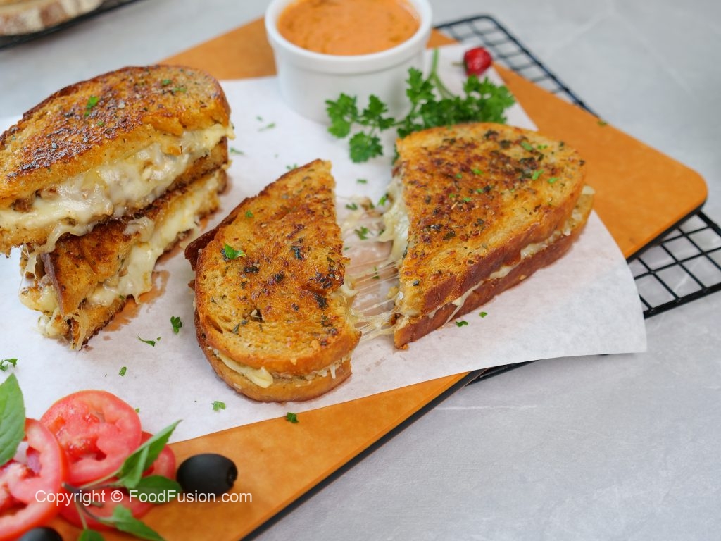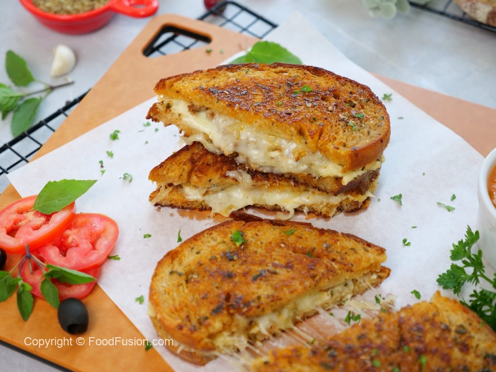 -On a frying pan,place sandwich,cover & grill on low flame from both sides until golden & crispy (makes 3-4 sandwiches).