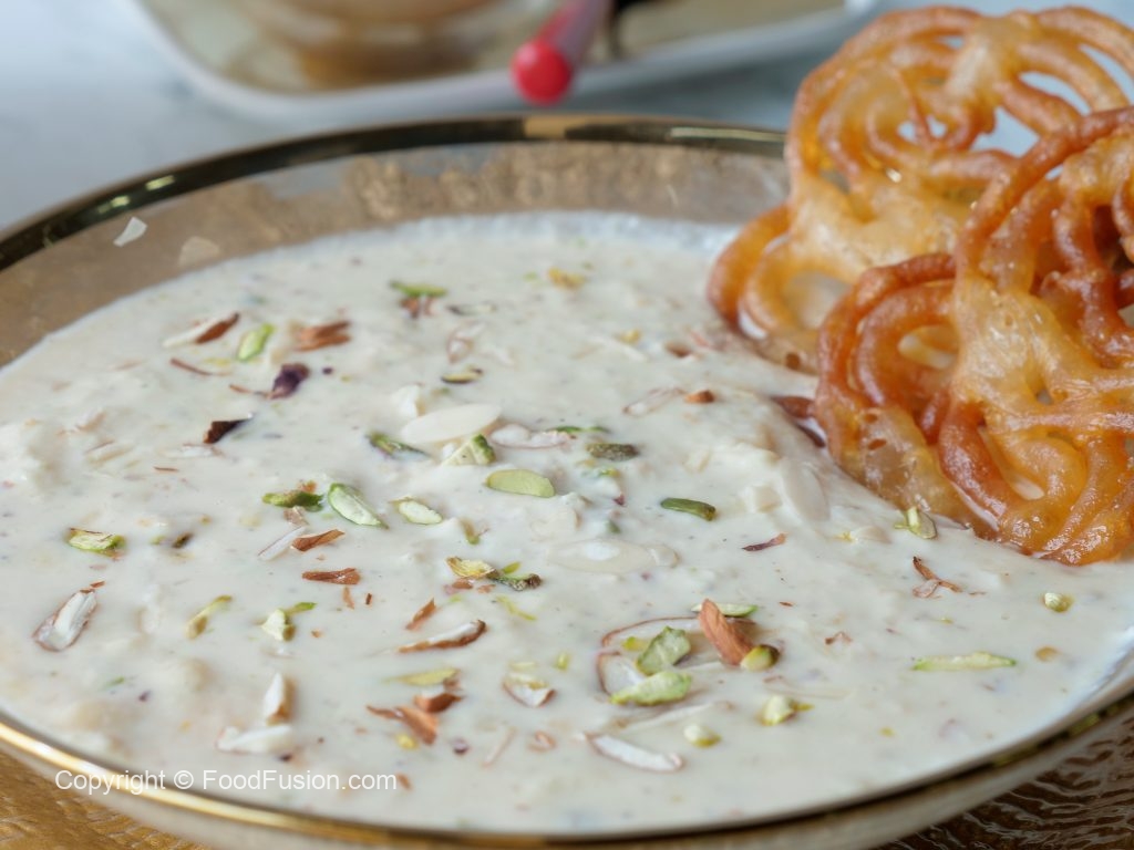 Try this amazing combination of Jalebi Rabri a treat for anyone with a sweet tooth. #HappyCookingToYou #FoodFusion #OlpersCream