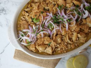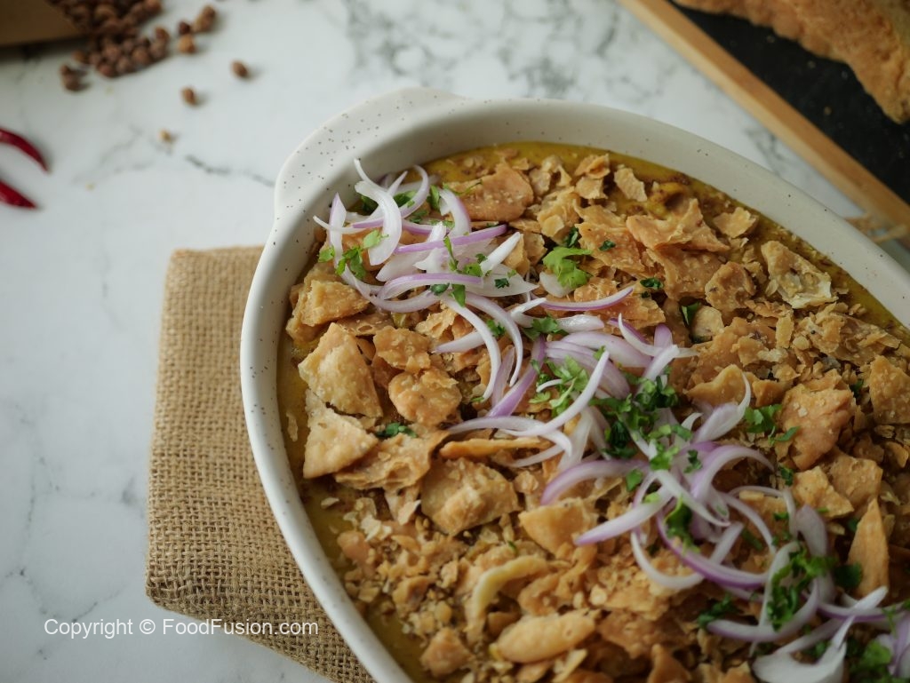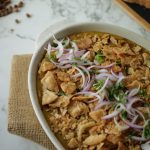 -Sprinkle chaat masala,papri,onion,fresh coriander & serve with bread!
