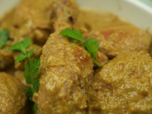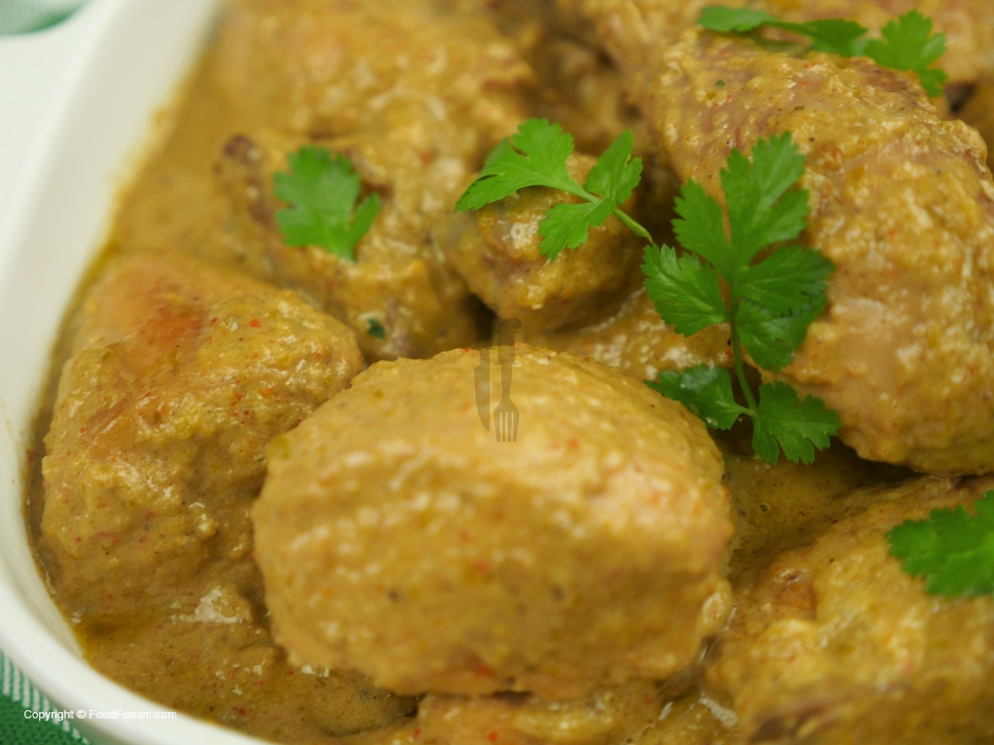 Heat oil in a pot and add marinated chicken, give it a good mix, cover and cook on low flame until done (approx.20 mins) Add ¼ cup water if required.