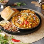 -Serving plate mein khathiawari choley,tayyar hari chutney,tamatar,chaat masala,lal mirch crushed, pyaz,papri aur hara dhania dal dein aur pav buns ka saath serve karein!