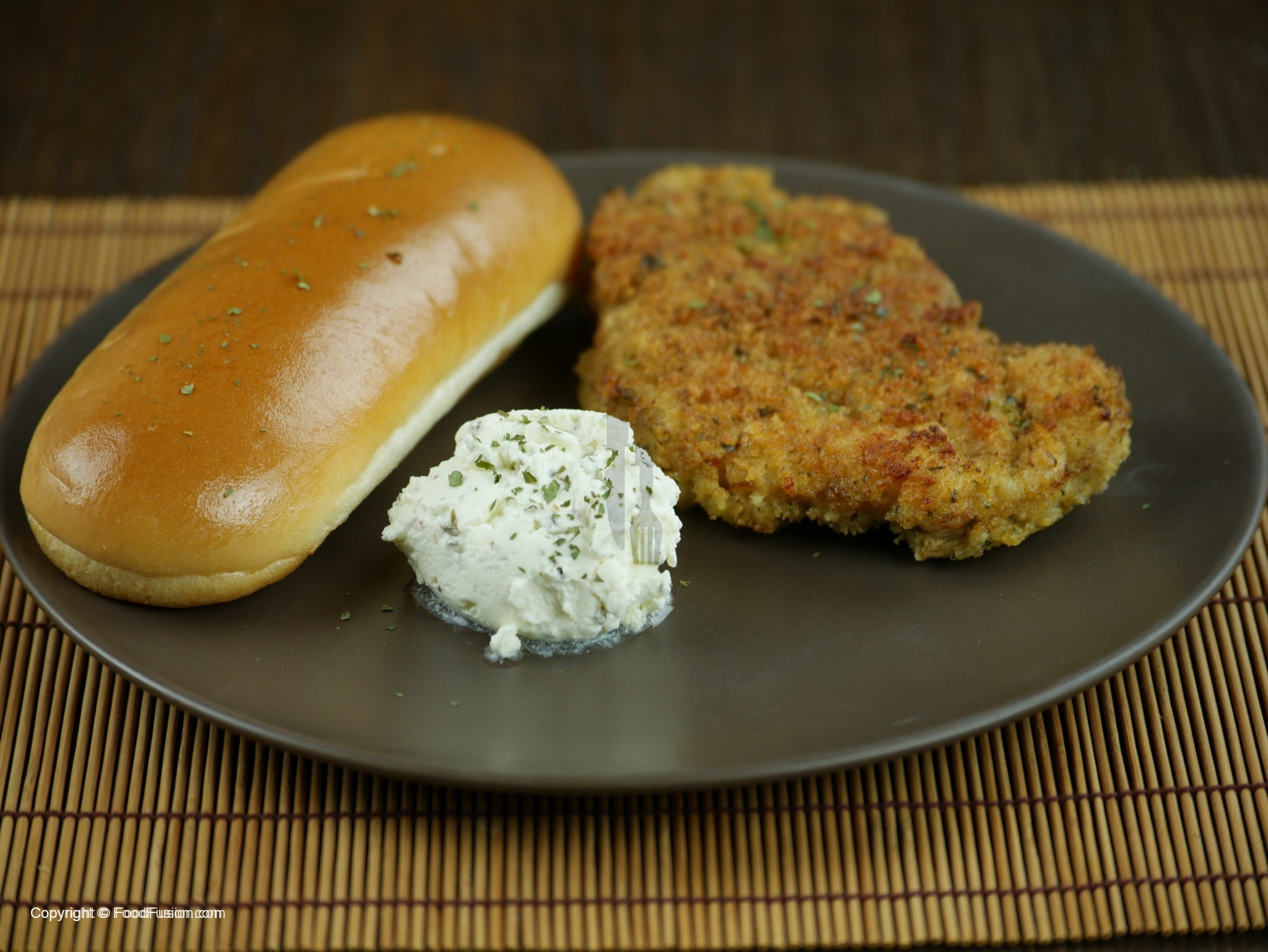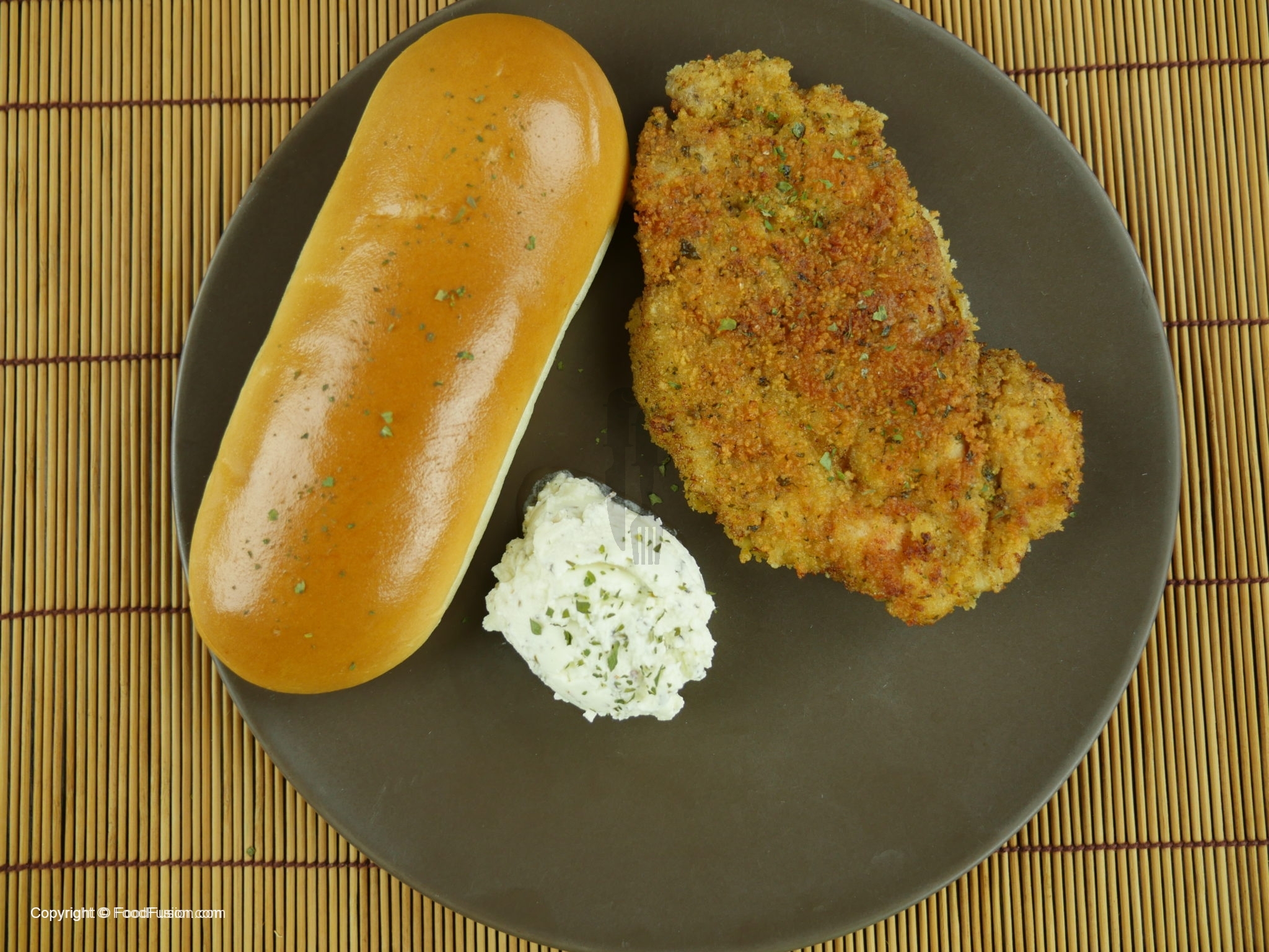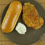 Serve Katsu chicken hot with sour cream with herbs.