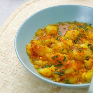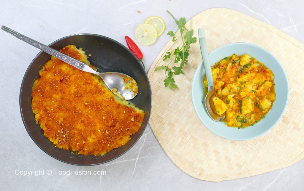 -In a serving plate,add spicy mashed potatoes,khatai water,sprinkle fresh coriander,lemon juice & serve!