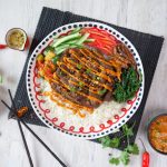 -Spicy gochujang mayo drizzle karein, sesame seeds sprinkle karein aur sesame soy sauce ke sath serve karein.