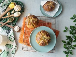 Apply milk with the help of brush on top of the buns & bake in preheated oven at 180 C for 22 minutes (on lower grill).