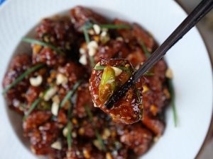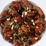 -In a wok,add garlic,ginger,tomato ketchup,soy sauce,vinegar,water,cornsyrup,brown sugar,red chilli powder,salt & red chilli crushed.