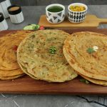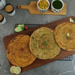 On heated griddle,place rolled paratha,add clarified butter & cook paratha from both sides until golden & crispy (makes 3).