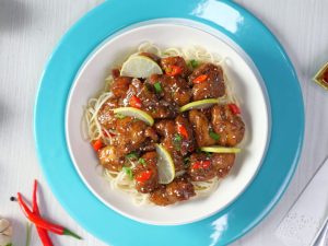 -Garnish with green onion leaves,lemon slices,sesame seeds & serve with noodles,spaghetti or rice!