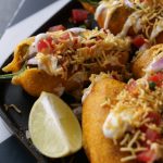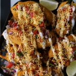 -Now add onion, tomatoes, fresh coriander, chaat masala, yogurt, nimco sev & red chilli crushed from top & serve!