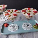 -Serving glass mein mixed fruits,kiwi,papaya,strawberry,grapes aur tayyar firni dal dein.