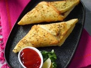 -Apply prepared herb butter,fold both slices in rectangular shape & seal properly then apply prepared herb butter (makes 4).