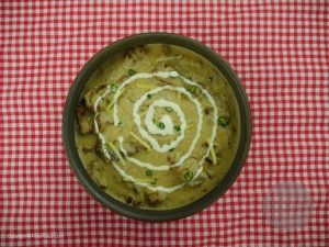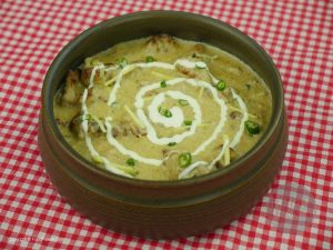 Hari mirch aur adrak dal ker cream sa garnish karein.