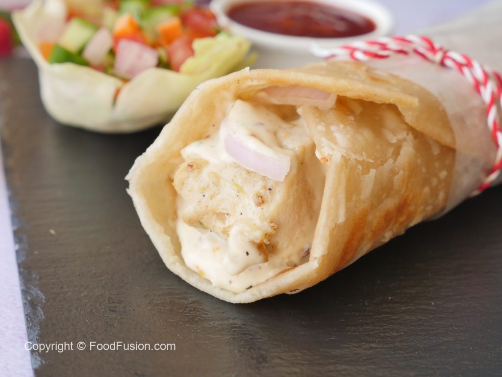 Paratha per tayyar creamy white sauce,chicken malai boti,pyaz aur creamy white sauce dal dein aur roll ki tarhan fold karein aur butter paper mein wrap ker ka serve karein! (Makes 4).