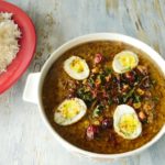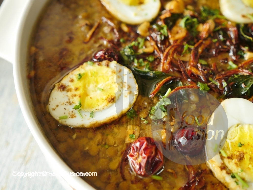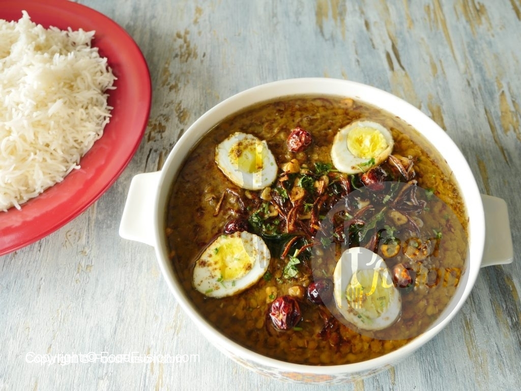 Add tadka on cooked black lentil gram,garnish with fried eggs and sprinkle garam masala powder & serve.