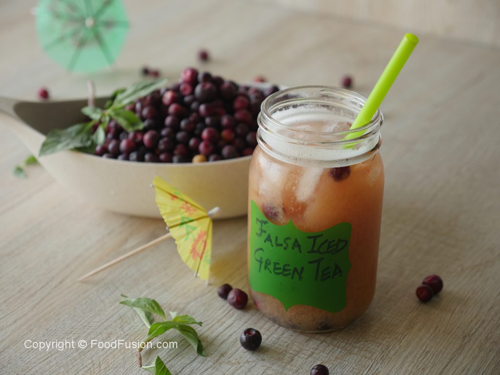 In bottle,add prepared green tea and 3 tbs of falsa puree and mix well.