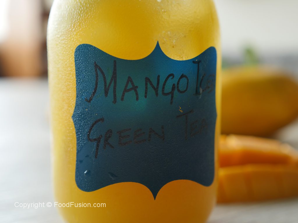 In bottle,add prepared green tea and ¼ Cup of mango puree,lemon juice and mix well.